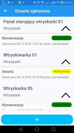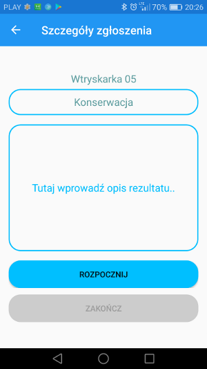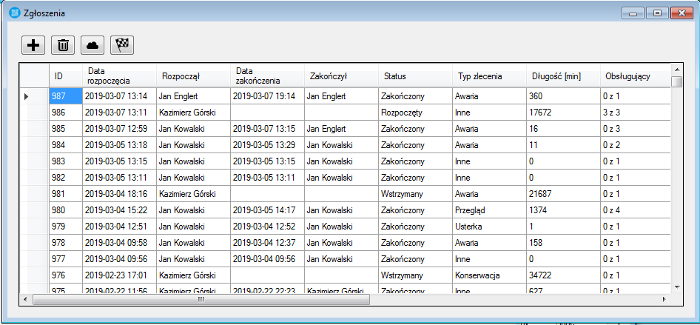 When the incident has been completed, the employee presses the Finish button and the time stops counting. Information containing details of the event, duration and information about the operators is saved in the database.