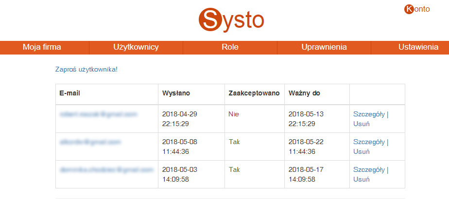 By registering directly in the application, the user A creates a unique work space for him and his work mates. In order to share data with his coleagues, the user invites them by their e-mail addresses. An e-mail is sent with personalized registration link, when the invited user B registers using it, he'll be autimatically assingned to user A's work space. The number of users within a single work space is limitless and all created data is accessable for all users of the work space. The number of work spaces is also limitless and no data is shared between two different work spaces.